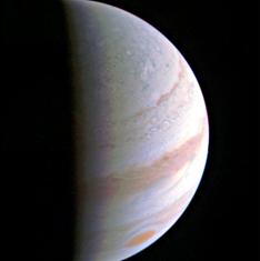Aunque los resultados de los instrumentos se darán a conocer paulatinamente, un puñado de imágenes de luz visible de la cámara JunoCam, serán publicadas en los próximos días. Esas imágenes incluirán los puntos de vista de resolución más alta de la atmósfera de Júpiter y el primer vistazo de los polos norte y sur de Júpiter. La foto de arriba es sólo un anticipo.