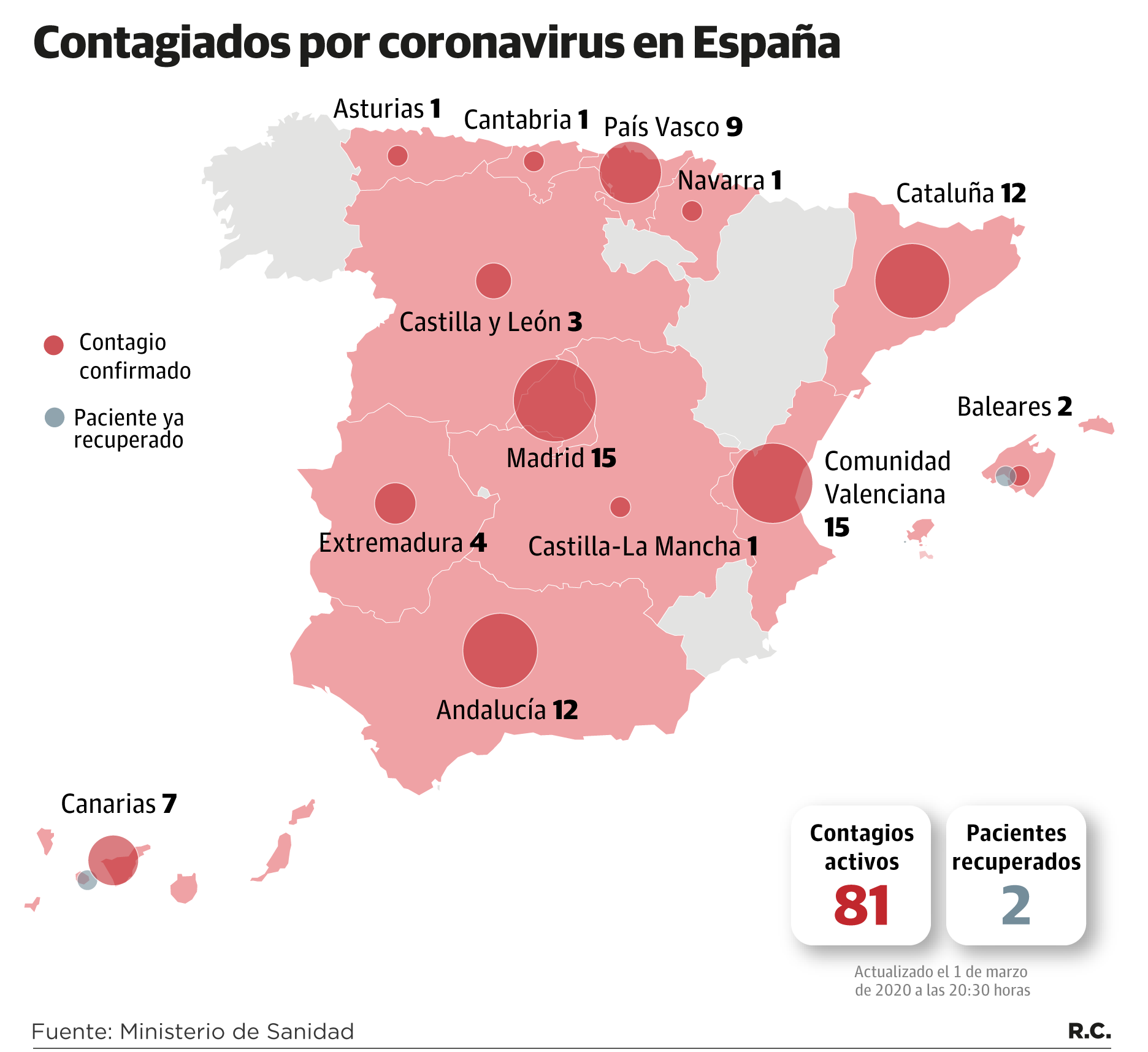 leonoticias Se elevan a 83 los casos de coronavirus en España tras los nuevos positivos de este domingo