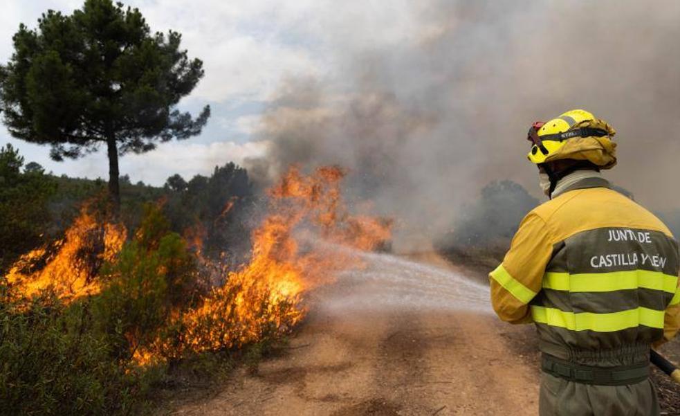 Un bombero trabaja en la extinción del incendio del pasado verano, en la Sierra de la Culebra. EMILIO FRAILE-EUROPA PRESS