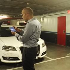 Aitor García, responsable del programa Red de Vodafone, en la demostración en el parking.