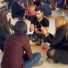 Setenta participantes y un reto: construir la torre más alta con spaguettis y nubes de gominola en 30 minutos. A esta propuesta se han enfrentado los estudiantes de la Facultad de Económicas en la V edición del Team Building Games organizado por el Grupo de Investigación en Marketing e Investigación Operativa (Grupo IMO), esta mañana en el hall del centro académico. Para inscribirse cada participantes ha donado algún producto para el Banco de Alimentos y el resultado ha sido una recogida de 220 kilos de alimentos como galletas, pasta, aceite, turrones, legumbres y que serán entregados a la organización los próximos días.