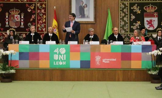 El presidente de la Junta de Castilla y León, Alfonso Fernández Mañueco, ha inaugurado este viernes el curso universitario de Castilla y León en el Aula Magna San Isidoro de la Universidad de León, donde ha reafirmado su compromiso de investidura de aumentar progresivamente el presupuesto destinado a las universidades de la comunidad, hasta un 10% a lo largo de la legislatura, con el objetivo de que éstas puedan afrontar con garantías los grandes retos a los que se enfrentan en la actualidad, entre los que destacan la apuesta por la investigación, la internacionalización y la transformación digital.