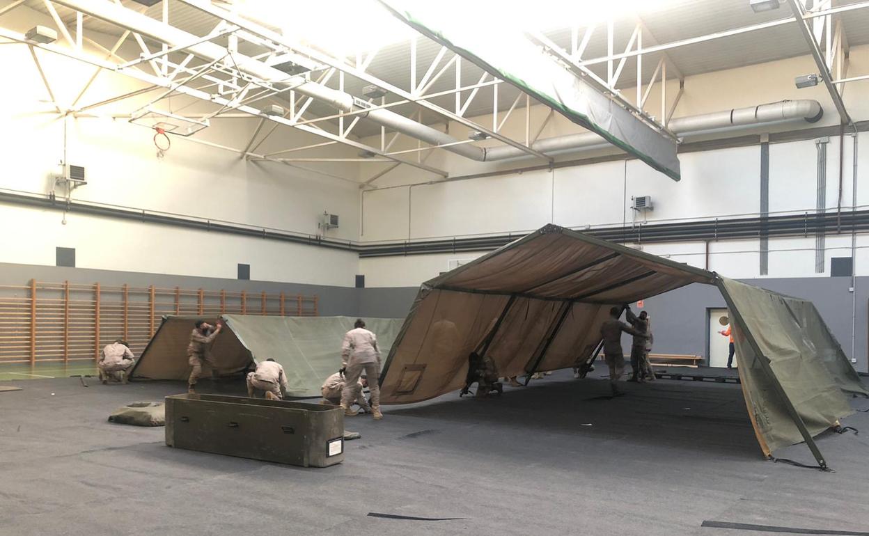 El Ejército del Aire es el encargado de montar en el interior del pabellón 4 tiendas TM54 de 6x6,36 para la realización de los test. La Policía Local de León y Protección Civil serán los encargados de gestionar los accesos al pabellón, donde habrá una puerta de entrada y otro de salida.